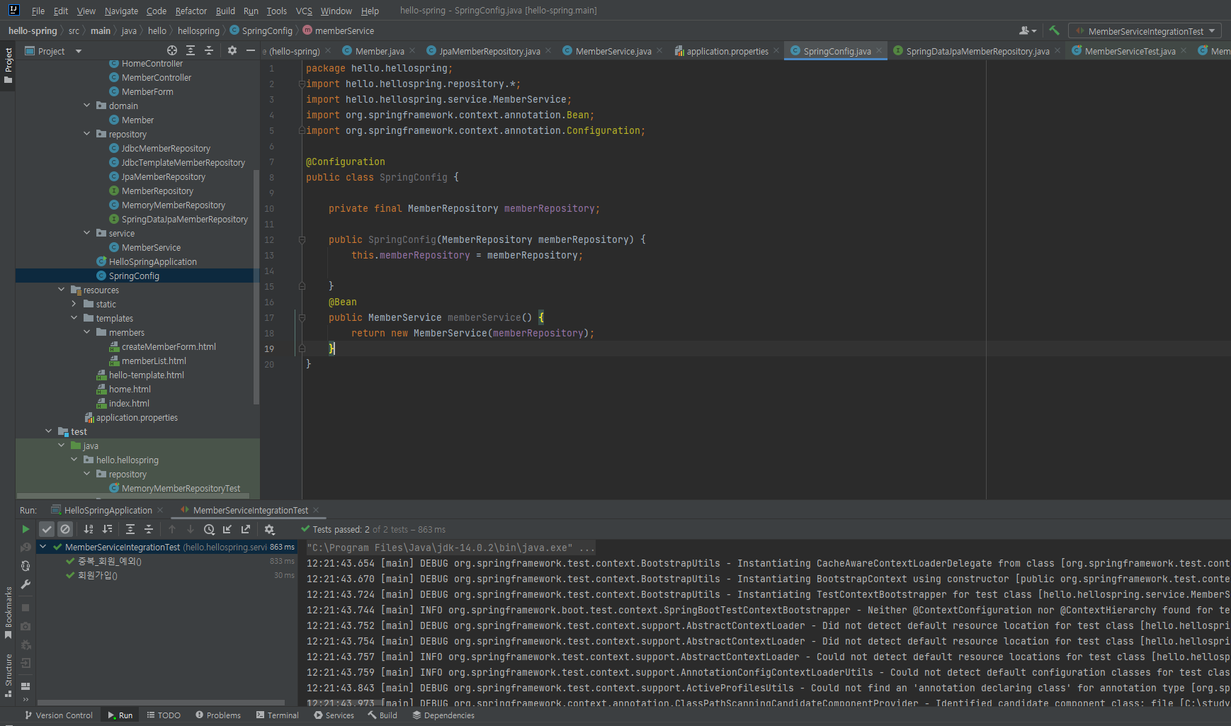 <스프링 데이터 JPA 회원 리포지토리를 사용하도록 스프링 설정 변경> SpringConfig