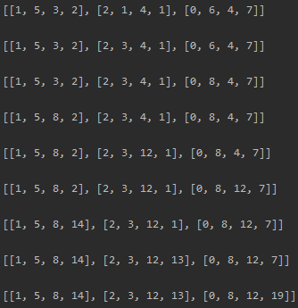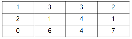 #dp = [[1, 3, 3, 2], [2, 1, 4, 1], [0, 6, 4, 7]]