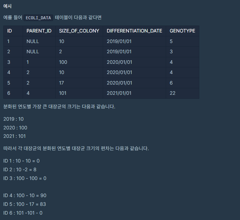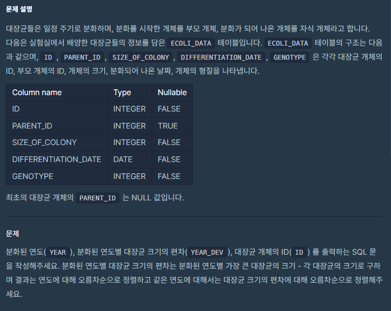 우선 분화된 연도별 가장 큰 대장균의 크기를 구하는 테이블을 만든다.