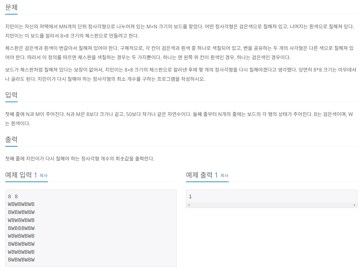 https://www.acmicpc.net/problem/1018