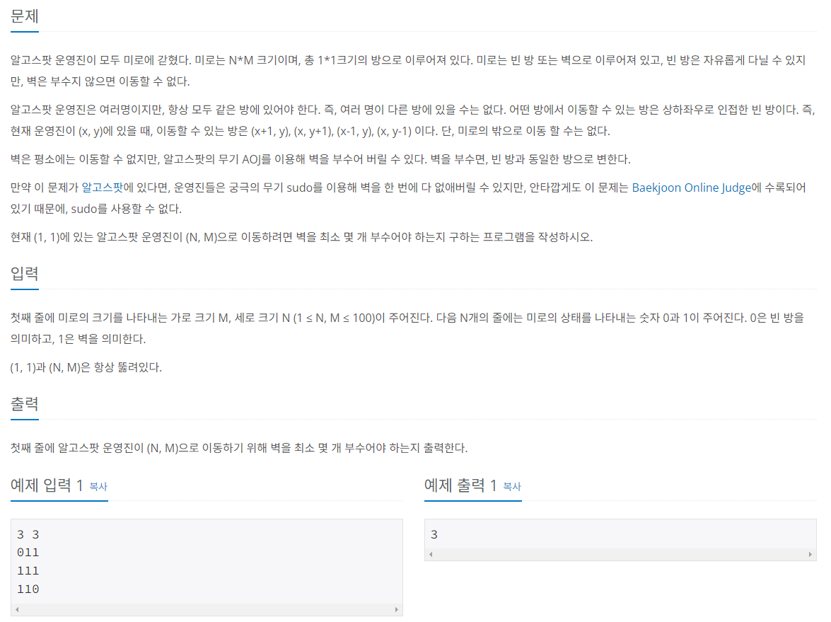 이전 미로만들기와 동일한 문제이다. n, m 값의 범위만 재설정해준다.