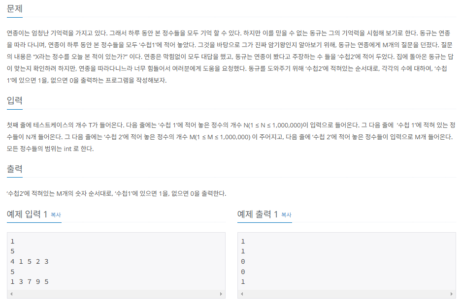 - 미들러 문제 : 암기왕 https://www.acmicpc.net/problem/2776