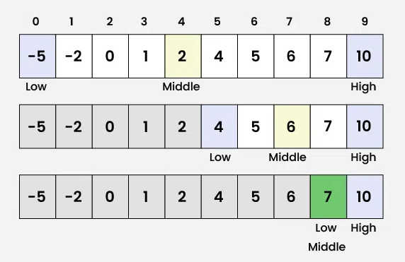 정렬되어 있는 리스트에서 탐색 범위를 절반씩 좁혀가며 데이터를 탐색하는 방법이다. 찾으려는 데이터와 중간점 위치에 있는 데이터를 반복적으로 비교해서 원하는 데이터를 찾는 것이다. 재귀와 반복문으로 구현할 수 있다.