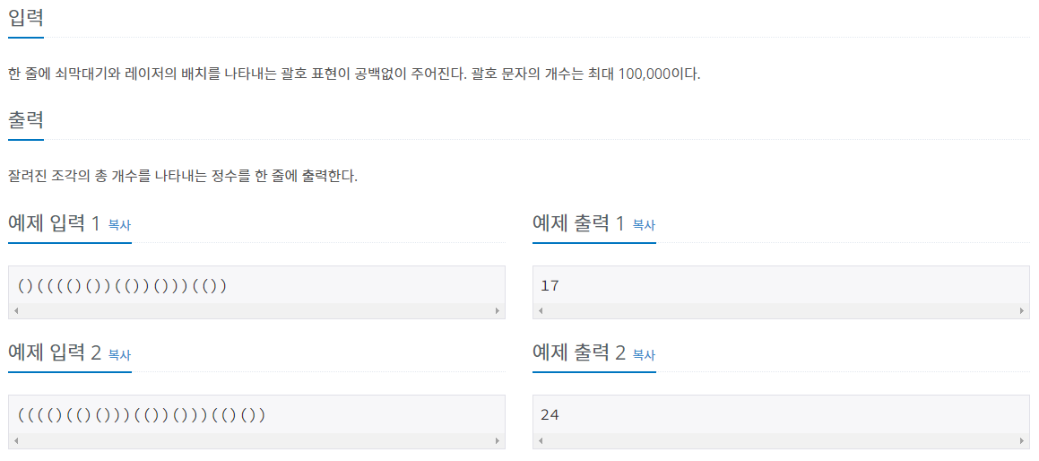 if (str[i - 1] == '(') { //이전 문자가 (이면 레이저