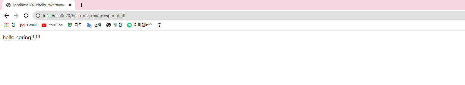 http://localhost:8070/hello-mvc?name=spring!!!!!! 을 입력하여 접속한다.