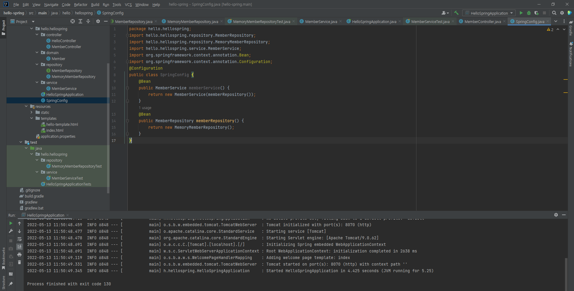 회원 서비스와 회원 리포지토리의 @Service, @Repository, @Autowired 애노테이션을 제거하고 진행한다.