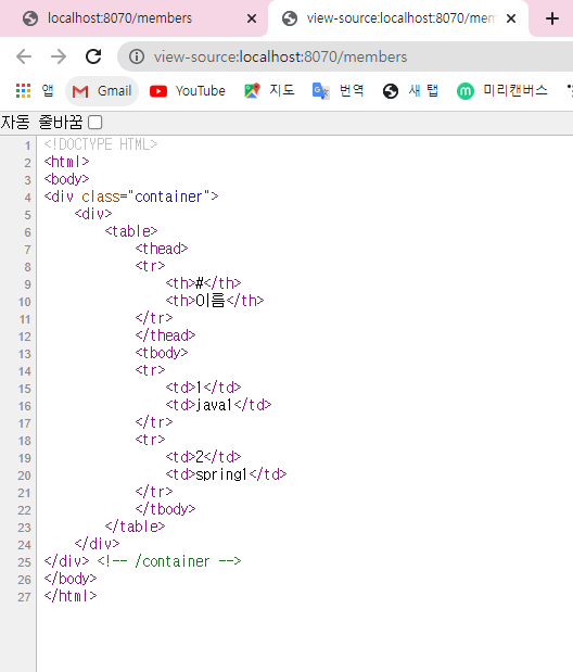 <회원 리스트 html> resources->templates->members->memberList.html 생성